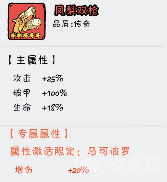 使用装备方面,最好用上凤梨双枪,在提供攻击的同时,还能够带来破甲效果,另外还有25%的增伤效果,另一个核弹武器也可以用,全面性差一点,但是增伤跟破甲双属性能力都不错。在科技点方面,可以优先提升肌肉,也就是生命力,其次就是弯弓大雕,也就是攻击了。火源战纪马可玩法攻略就介绍到这里了,大家尽快掌握吧。