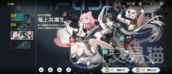 角色活动换取处,里面会有三个四星角色,还有一个五星角色,每10抽就能得到四星角色或者四星武器。如果在卡池中抽出五星角色,那么有50%的机会就会成为当期的up角色。角色会伴随着时间更换,同时还会有继承机制,甚至还有大保底继承机制,在抽取时就别忽视这些细节。