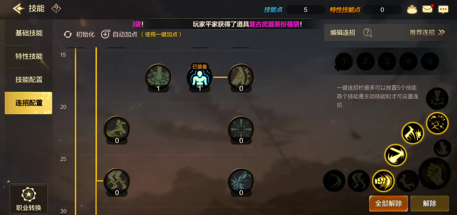 上述操作都进行好后,玩家们全部进入学习技能的操作界面里,并在同一时间点击学习技能的字样,当五个人都操作好后,换一条线路来重新进入,上线后查看通用技能,如果公会的技能属性变成了8级就代表成功了。