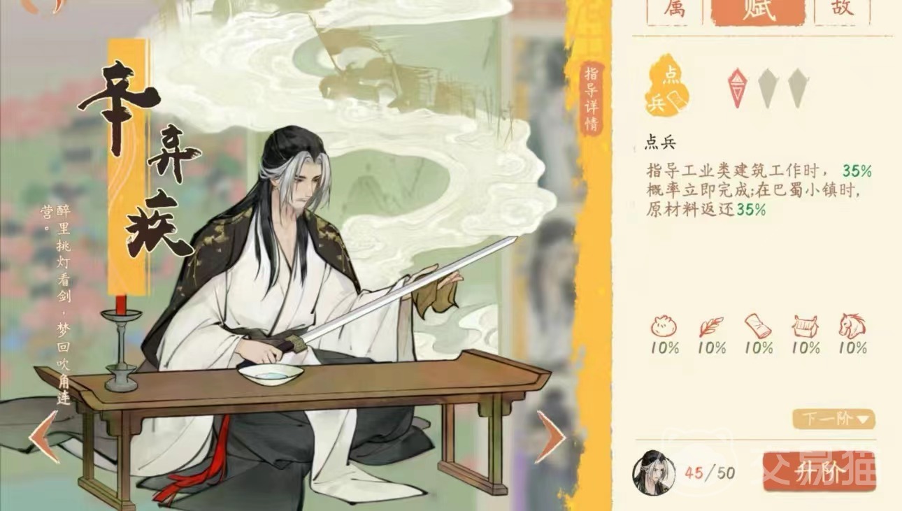 同时,玩家还可以将王昭君搭配上其它名士角色使用,利用王昭君高效的生产能力,再搭配上一些擅长原料加工升级和原料出售方面的名士,例如沈括与辛弃疾两位名士,他们俩在游戏中的定位就是建筑加工与原料加工,搭配以后可以将王昭君生产制造的原料进行售卖加工,最后能够获得更多的收益加成,为玩家在游戏后续的探索打下基础并积累了丰富的经验。