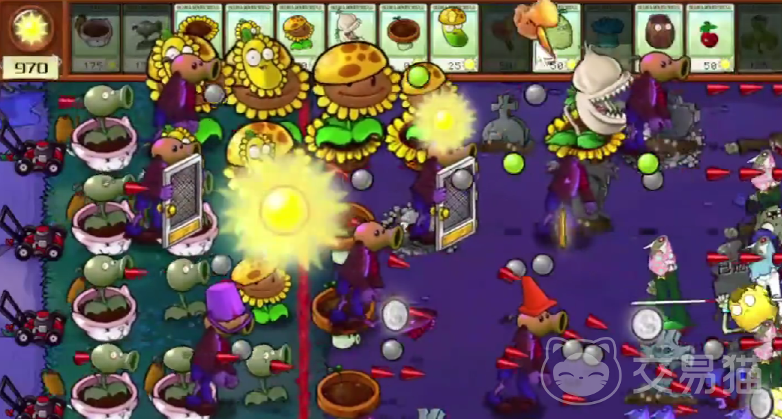 最后玩家可以在花盆香蒲上全部种植上暗夜豌豆射手,暗夜豌豆射手是可以在夜间活动的,并且攻击力和普通的豌豆射手没有区别,最后玩家需要子所有的豌豆射手上面贴上豌豆荚许愿机,豌豆荚可以增加植物的产出和攻击速度,最后玩家可以在怪物比较多的时候使用樱桃炸弹对怪物进行秒杀。