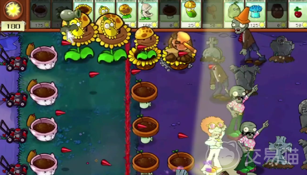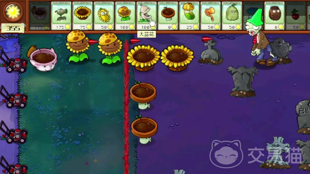 在场地的后面一排种植上花盆香蒲,花盆香蒲可以无视地形进行战斗,并且还能够在夜间正常工作,种植好了之后万斤爱需要在最前方种植好0阳光消耗的花盆小喷菇,小喷菇在前期有一定的战斗力,后期可以替换为阳光向日葵或者替换为大蒜食人花,在最后一排完全种植好花盆香蒲了之后,玩家基本上拥有了一定的战斗力,可以在最前方放上0阳光消耗的坚果用于抵挡僵尸的进攻。