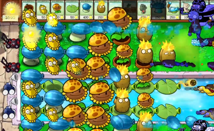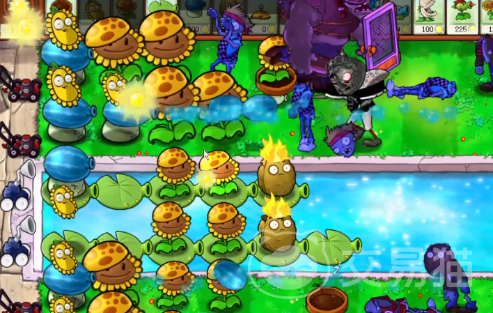 游戏开始之后需要先种植向日葵,这样才能产出阳光供自己去兑换这些植物,游戏里僵尸出现的先后顺序以及路径都是随机的,可以等到僵尸出现之后再去对应的道路上种植植物,整体上来看这一关的难度并不大,玩家可以在最外侧种上坚果,然后里侧种上向日葵以及减速的植物就可以。