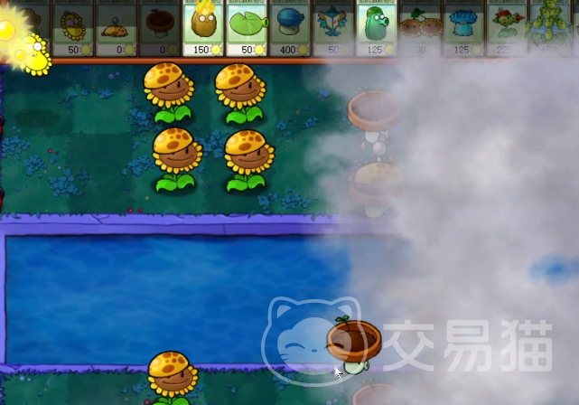 这是黑夜模式,并且带有水池,而且有迷雾会笼罩场景,首先要选择的就是比较基础的阳光产出植物,分别有向日葵阳光豆,就是在游戏里既能照亮场景,同时也可以起到防御作用的坚果强,以及路灯,场景里面有水池的设定,所以睡莲也是一定要选的。