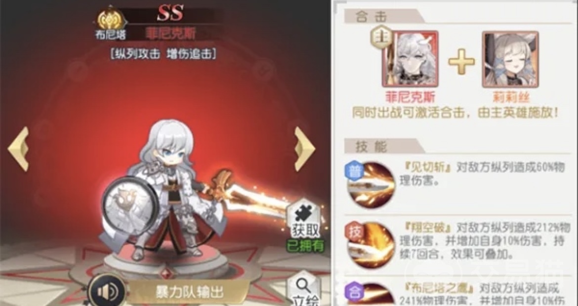 大家可以选择主角加上菲尼克斯,之后还可以加上克洛维、莉莉丝、奥罗拉、费莲诺尔,或者圣洁寓言也可以来替代,在这款游戏中菲尼克斯最主要的就是增加伤害追击并且还有纵列的攻击,在队伍中起到一个中心的效果。