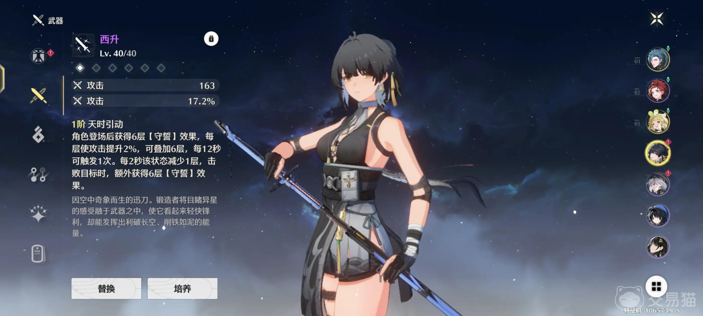 西升来源于空中奇象,它是从中而诞生的迅刀,攻击的速度比较快,能够提高不少攻击能力。这把武器的属性是会随着小伙伴们自身等级的提升而变化的,所以前期的时候努力升级武器也可以增强。