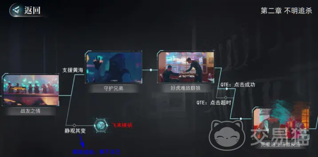 之后根据调查的结果,来到白鲨俱乐部中,接着就来到了第二章中,在俱乐部中,大家看到了嫌疑人,并且在被别人攻击,大家需要选择是否将它制服,还是继续隐藏,最好选择帮助嫌疑人,后面会发现是自己的前队友黄海,在逃亡的过程中,主角们来到了港口,在第三章中,大家会通过线索,找到一位叫做银鞋子的杀手,与他展开战斗,在这里的互动选择,是需要点击救下杀手手下的小女孩,来拿到关键线索,之后就可以进入第四章。