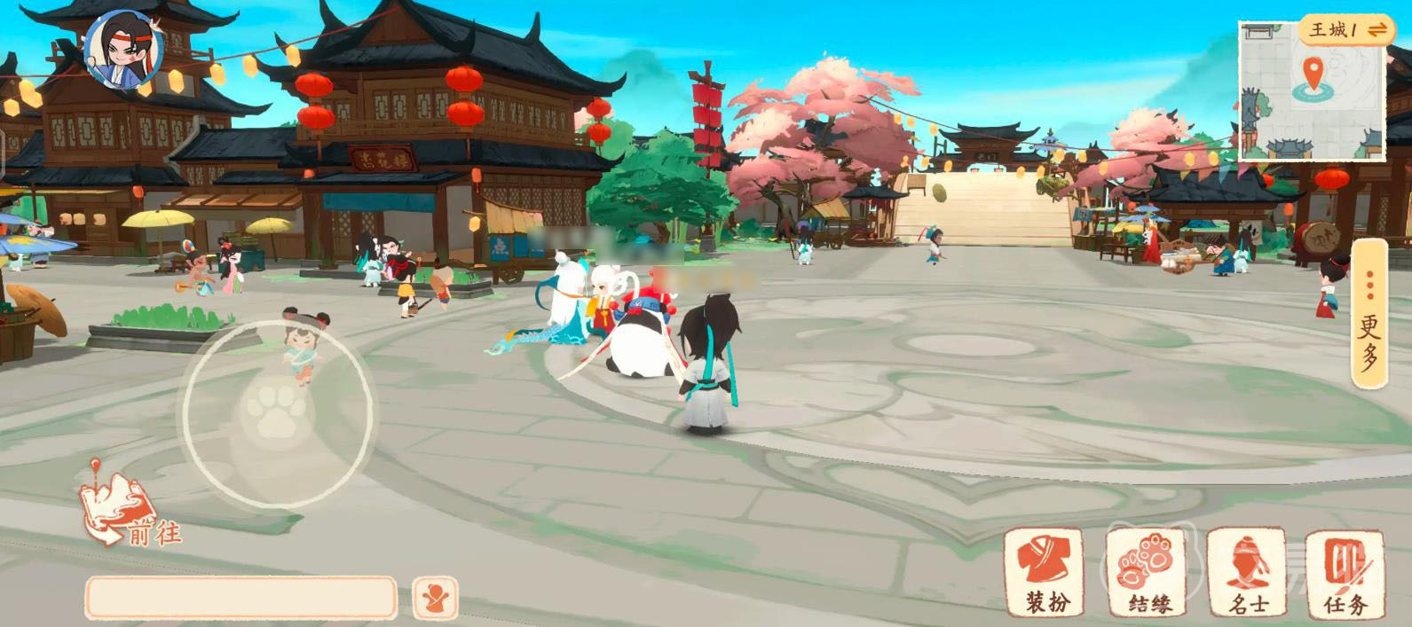 游戏是有联机玩法的,就是二测当中新加入的“王城”系统,这个新系统玩法的界面采用了3d建模,与游戏原本的2d水墨画风是截然不同的感觉。在这个王城里面,小伙伴们就可以和结识其他的玩家,一起互动社交,而且还换上不同的时装服饰来装扮自己的人物,做人群中最亮眼的崽。