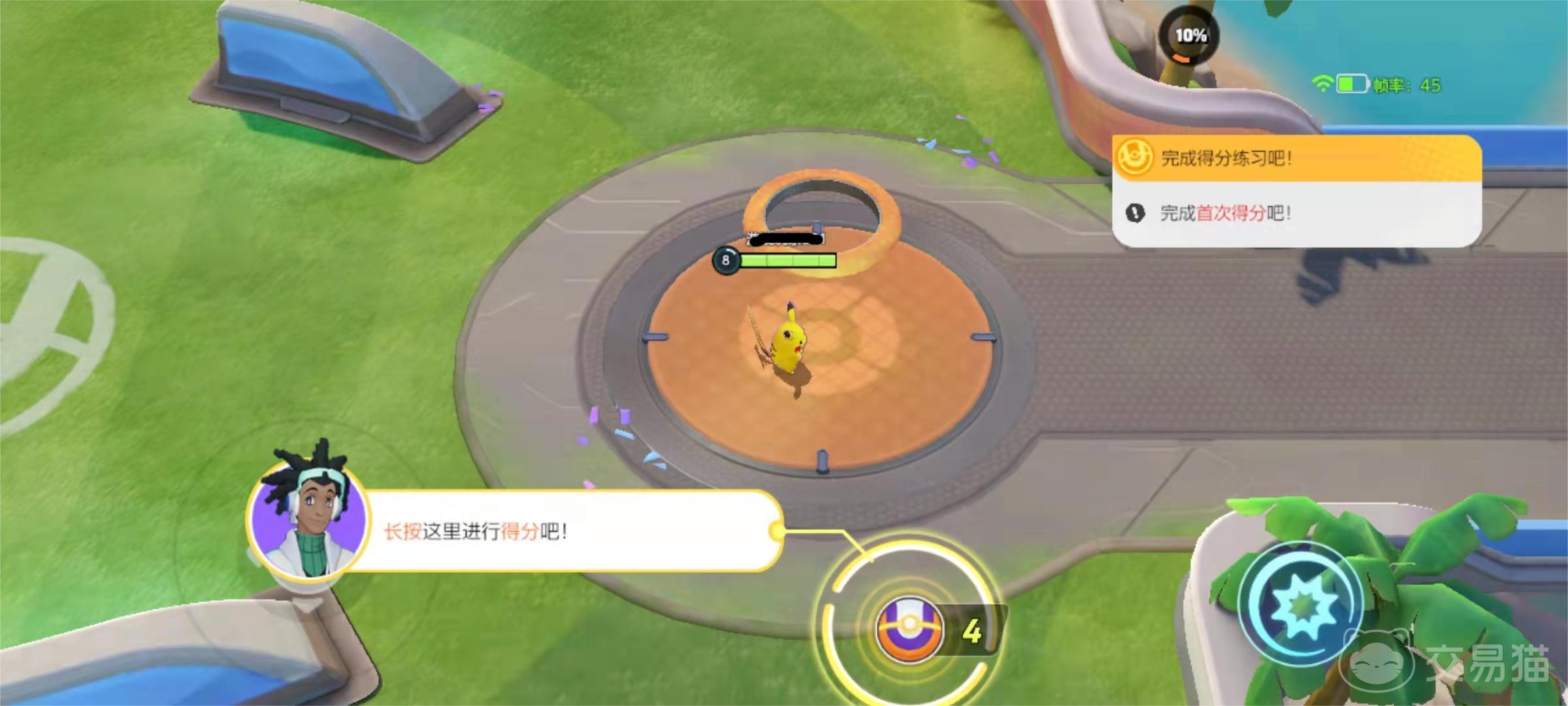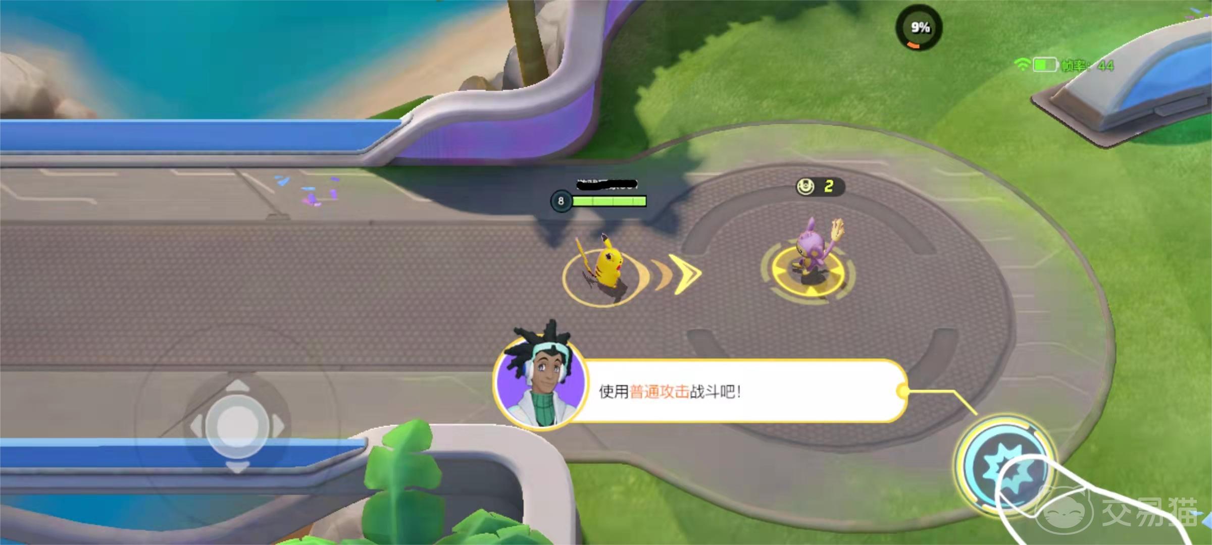 在新手挑战中,其实整体的难度不高,玩家主要就是得根据引导来完成各个基本的操作,这和多数的MOBA游戏的基础教学相似,具体来说就是要通过操纵左侧的虚拟摇杆来控制宝可梦接近手尾猴,使用屏幕右侧的攻击键进行攻击。