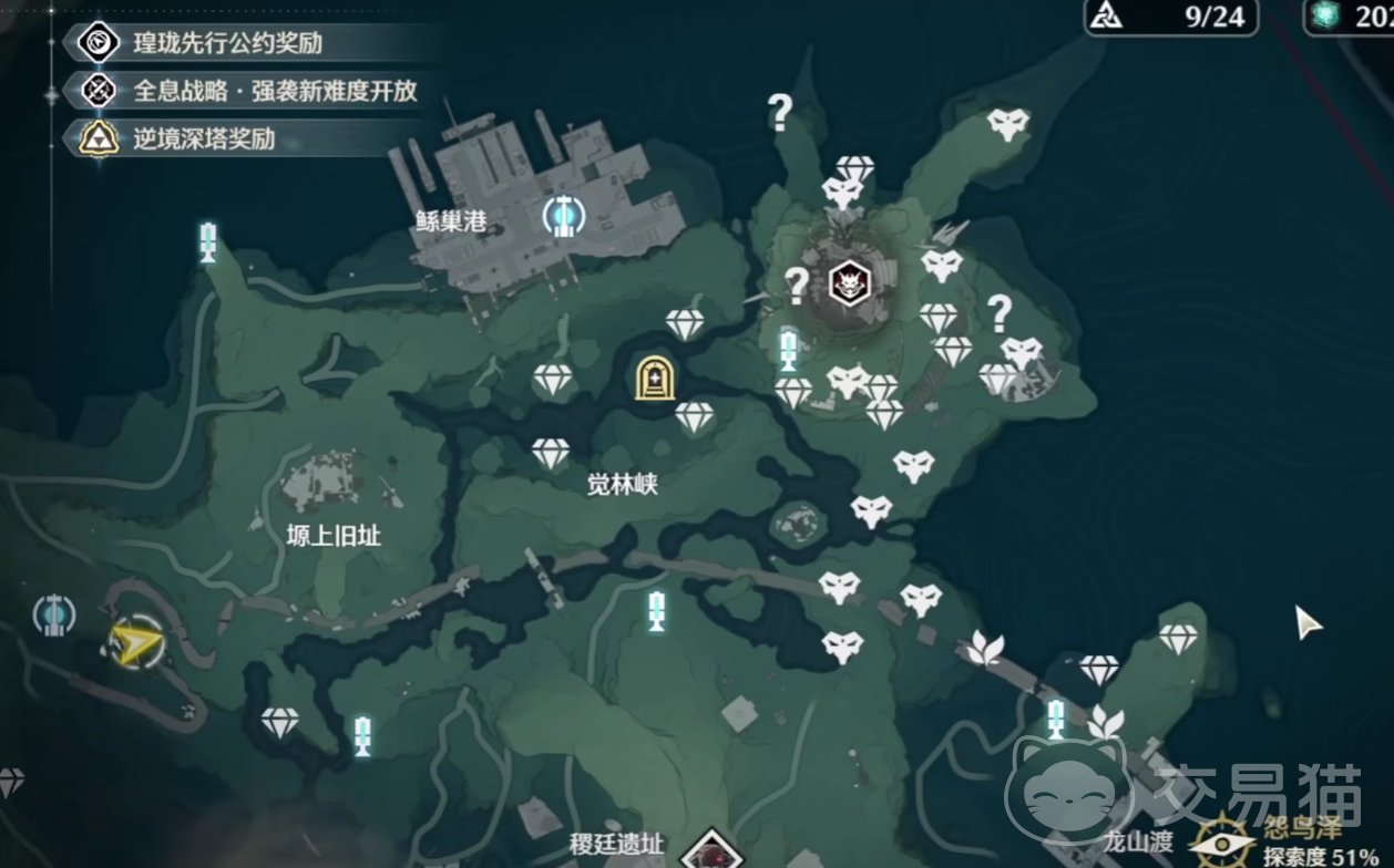 首先,玩家需要率先解锁【怨鸟泽】的所有传送点并且开启地区中的两个遗址,在开启了遗址之后,玩家需要抵达【觉林峡】这个地方,在落地传送点之后一直往南走,就能看到地图上标注的一个小门,从这个小门的方向再往南走100米就能看到一个发光的望远镜,玩家走到望远镜附近就能触发交互,点击【观察】即可进行交互,交互的时候玩家需要完成一个拼凑星宿的小游戏。