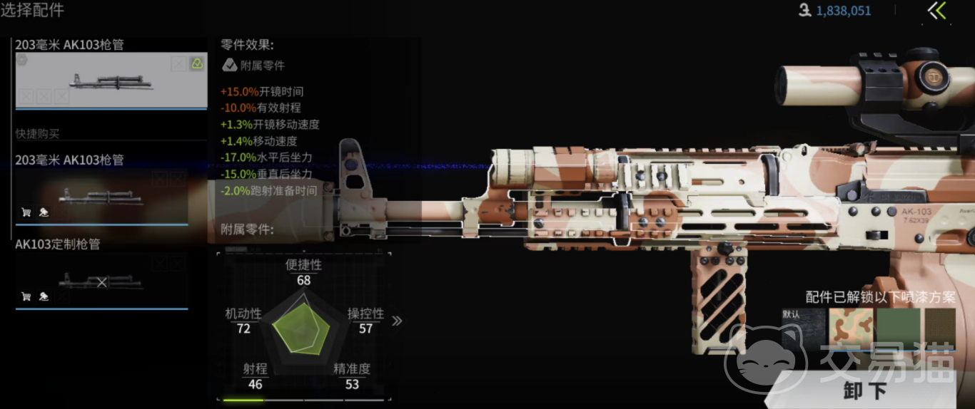 大家在改装SR-15这把武器的时候,可以安上一个消音器配件,它能隐藏声纹,让我们在战场上更加隐蔽,而且,这个配件的神奇之处在于,它能有效降低垂直和水平方向的后坐力,降幅高达20%。这就意味着我们压枪的时候会感觉轻松很多,再也不用担心枪口跳得太厉害了。接下来就要去改一下枪管了,小编个人推荐203毫米的枪管,这个选择挺稳的,负面效果也比较少。