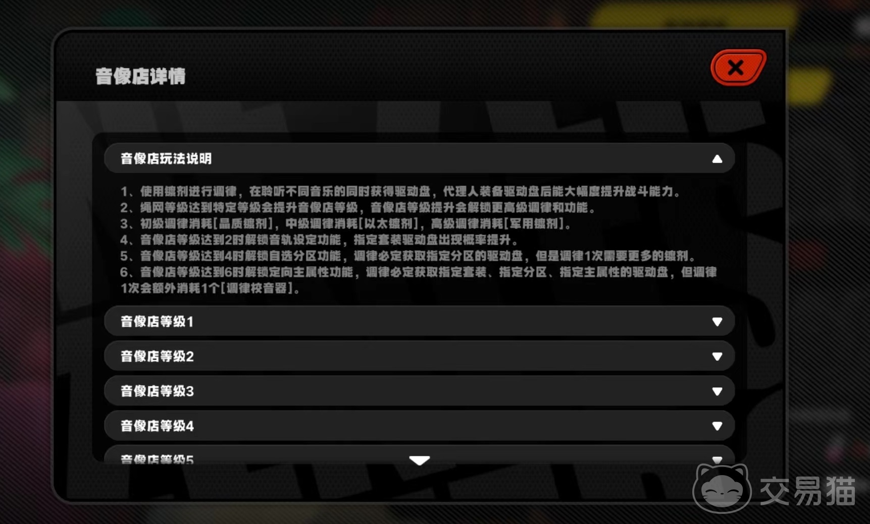 之所以说音像店作用非常重要,是因为在这里可以进行调律,调律是游戏中的创新称呼,能够获得驱动盘,大家可以理解为圣遗物。调律所需要的道具就是镀剂,得到驱动盘以后还需要升级等级,同样也需要镀剂。在解锁了音像店以后,它的等级也不是一成不变的,通过提高绳网等级还会提升音像店等级。音像店等级提升后,能够获得更高级的调律和功能。
