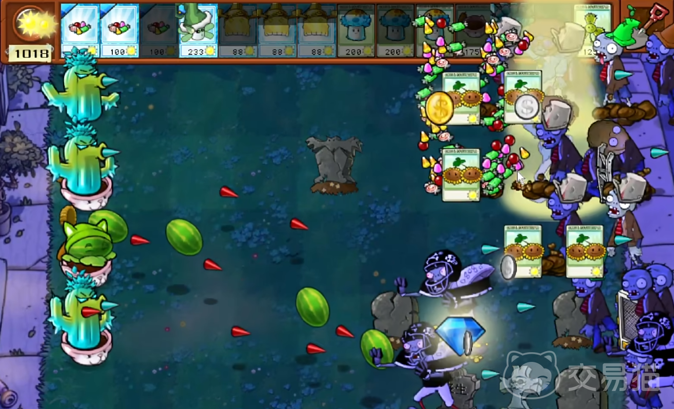 每一轮尸潮来临之前都会掉落一些比较有用的植物,其中向日葵炸弹就是一个大杀器,西瓜猫蒲作为持续输出点有了就放到最后一排,而向日葵炸弹用来对付带着头盔的舞王,一次性就能秒杀掉范围内的大量敌人,同时还能把他们转化成阳光,当防守压力比较大的时候就可以用。