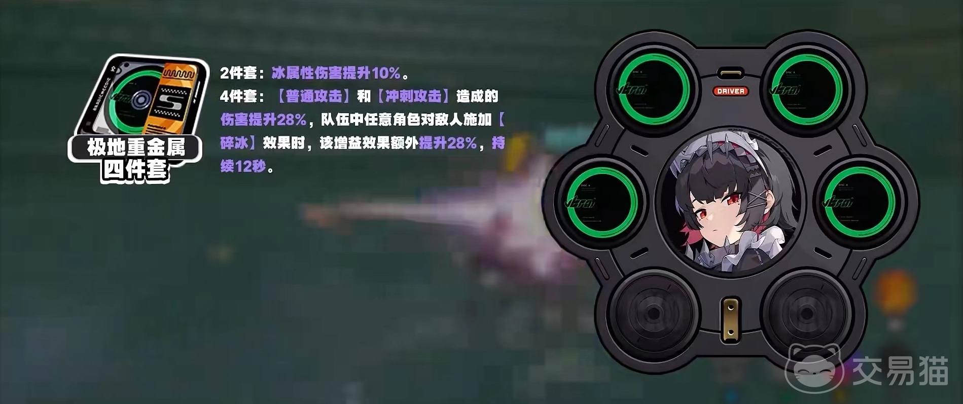 深海访客能带来无条件冰属性伤害加成,在冲刺攻击或闪避攻击造成冰伤时还能提供暴击率加成,这样的选择可以降低驱动暴击率毕业压力,让艾莲乔可以携带爆伤驱动盘。所以在后续选择驱动的时候就可以搭配上极地重金属和啄木鸟电音,这样的套装非常契合艾莲乔输出模式,可以轻松吃满四件套加成,啄木鸟两件套则提供了很需要的暴击率加成。前期可以使用末日碾核与季风放克来作为过渡,需要能量启动,其他方面依然可观。