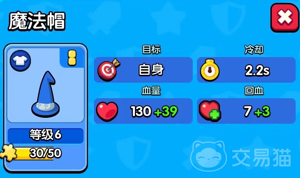 虽然魔法帽仅仅是蓝色品质,而且所附加属性也只有4个,但依然是法术流不可缺少的类型。效果为作用于自身,每2.2秒就可以发动一次,能够增加最大血量和恢复血量。回血是游戏中很重要的属性,受到伤害时,扣除完护盾后就要扣除血量,但战斗中依然可以进行回血,如果回血属性叠加的比较高,能够大大延长生存时间。
