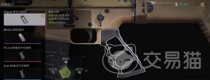 Miguel镂空式握把,在所有的可选择配件中拥有较高的机动性加成。例如可获得20%的开镜时间衰减,还有耐力加成。