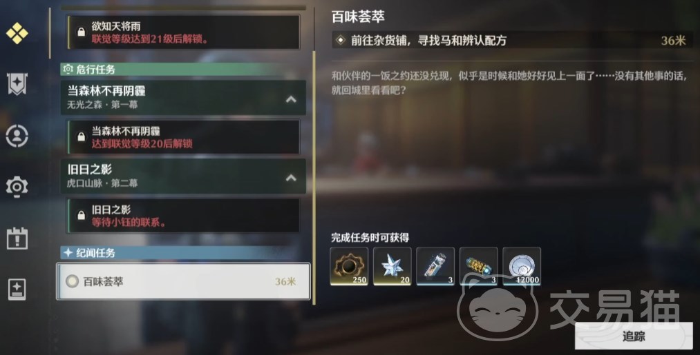 这个任务需要完成前置的道引任务“荣誉大厨”才会激活,接取任务前往杂货铺,并寻找马和辨认配方,跟着任务来即可,与马和对话后再找药店的蔻蔻询问配方。