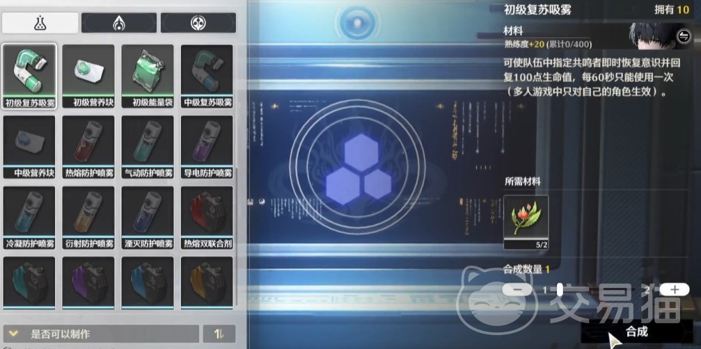 然后前往合成台获得合成材料,制作初级复苏吸雾,简单说就是复活药,然后再与炽霞交谈。随后回到攀花饭馆,告知NPC该配方。攀花会让玩家自己利用背后的烹饪台来制作,这样以后玩家就可以收集材料自己来制作“玉珍荟萃汤”了。