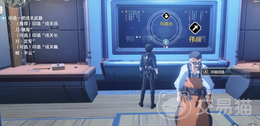 然后再去武器店询问伟叔关于金钥匙的事情,需要玩家印造一并戍关武器,迅刀、长刃、佩枪都可以,直接在伟叔背后的印造台上使用获取的材料来制作,完成后继续与NPC对话。