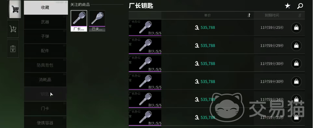 第二个方式就简单一些了,可以直接选择去交易所购买,因为游戏里很多老玩家手中会存在一些多余的钥匙,而这些钥匙他们一般会放在交易所去出售的,所以有需求的小伙伴可以前往交易所看看,直接通过购买的方式就能获取,不过最好对比一下价格之后再购买。