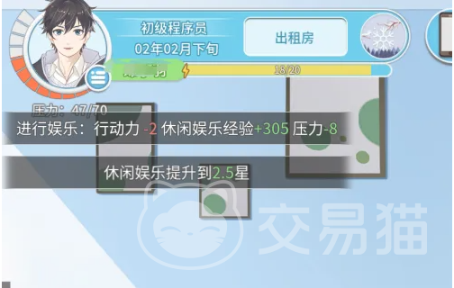 玩家根据个人的喜好点击其中的一种娱乐之后,就可以按照要求去完成。在完成之后,玩家就可以得到行动力,其实行动力就能帮助到玩家完成任务。只要获得的行动力比较足够,接下来就可以降低压力,对玩家而言,这就是一个值得的选择,要是有这方面的兴趣,可千万别忽视。