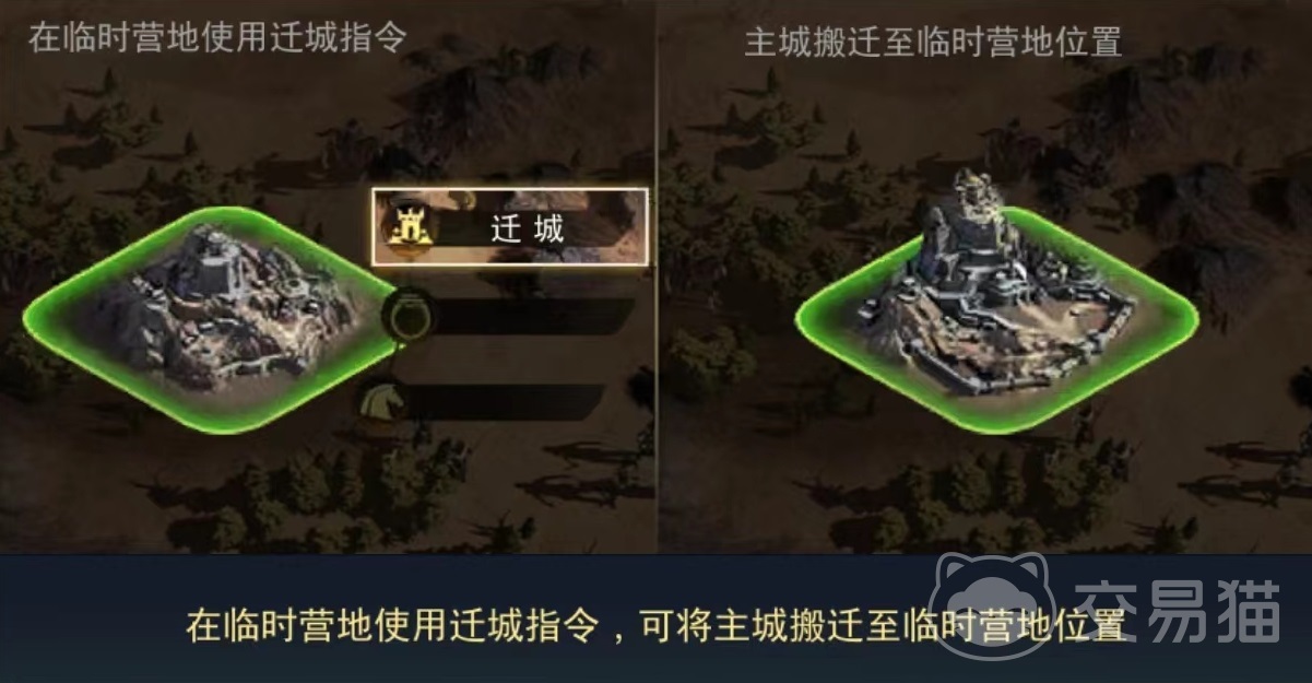 首先大家先要在地图中找到合适位置,将该位置土地占据,选择一个九宫格作为基础,接下来需要建造临时营地。只有临时营地建造好以后,后续才能使用迁城指令,将主城搬迁到临时营地位置。同时还有一点要注意,必须要主城与临时营地之间的路径为连通状态,这样才能迁移成功,这一点也是很多玩家容易忽略的地方。