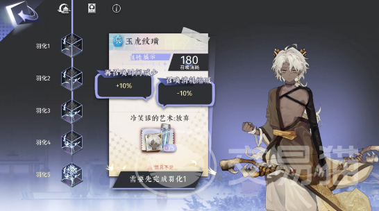 说到技能玉虎纹璜的“躯壳之饮羽”技能可以向敌人射箭,造成100%的力量伤害。而当角色培养到一定程度,解锁“神予破空”技能后,它的攻击距离还会进一步增加,并且可以无视敌人的一部分力量加护,对于坚固的敌人有着不俗的效果。这意味着在面对高防敌人时,玉虎纹璜能够发挥出更高的输出能力,帮助队伍更快地击败敌人。在成长方面玉虎纹璜也有着不错的表现,随着角色等级的提升,它会逐渐解锁更多的技能效果,如提升攻击力或者减少交换时间等。这些效果虽然看起来并不起眼,但在实战中却能够发挥出意想不到的作用。比如在关键时刻,减少交换时间就意味着能够更快地调整队伍配置,应对敌人的变化。