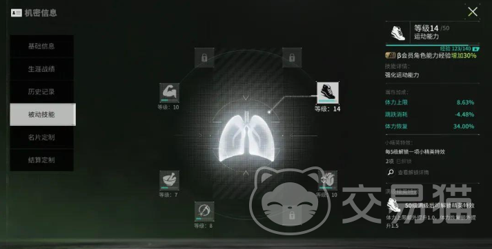 除了四肢力量外,还有运动能力也可以帮助我们提升体力上限,只有体力上限提升奔跑前来才不会因疲劳导致速度变慢,大家可以通过多奔跑、局内跳跃和翻墙等方式获取运动能力的经验。