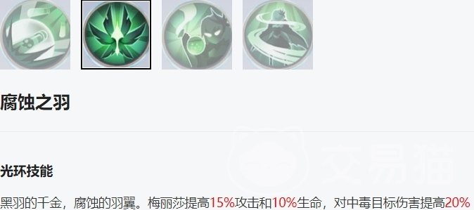 腐蚀之羽这个技能的效果挺直接的,就像一个光环技能一样,它给梅丽莎带来的每一个加成都是她正需要的。只有当梅丽莎学会了这个技能,她才算是开始有了一定的战斗力,要想让这个技能发挥出最大效果,搭配魔晶的话怎么也要1000年起步。