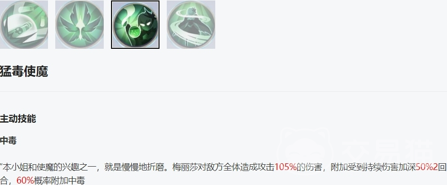 梅丽莎这个角色比较特别,玩她的时候得动点脑筋,在组队的时候,得给她找些能放毒的队友,这样才能让她发挥得更好。但有些玩家可能不太清楚永夜降临复苏梅丽莎技能是什么,甚至可能会觉得她的攻击力不够强。其实要想玩好梅丽莎,关键是要先了解她的技能,把她的技能都摸透了,问题就迎刃而解了。