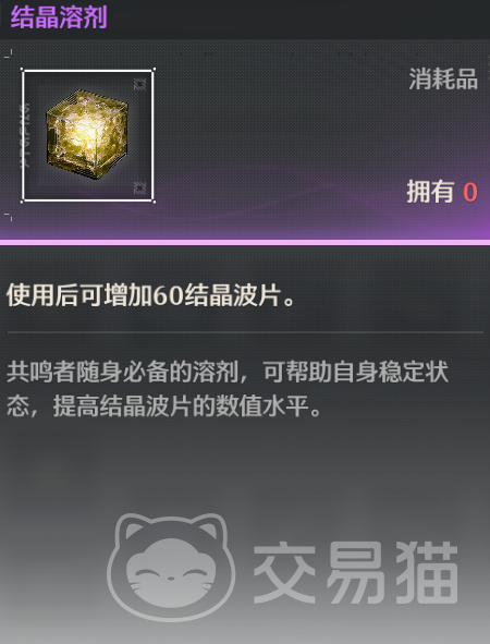 该方法需要大家用到结晶溶剂这样道具,这是一种可以补充体力的道具,该道具单个可以回复60体力,没有使用限制,大家有多少就能用多少,不过该道具很难获取。