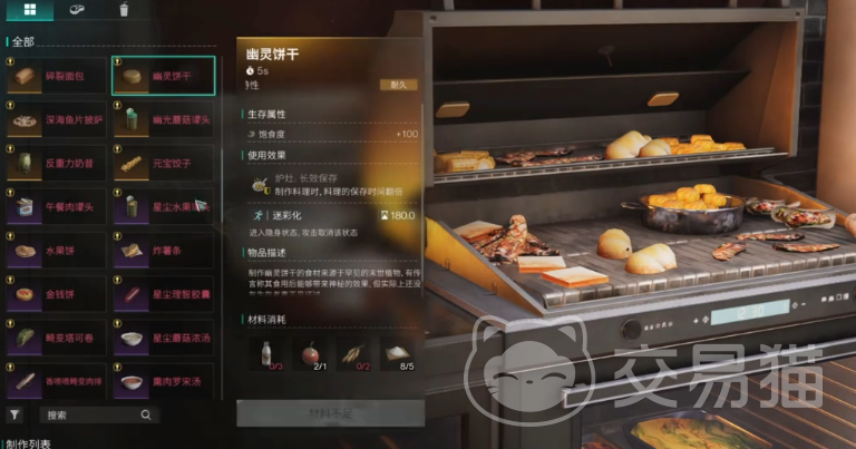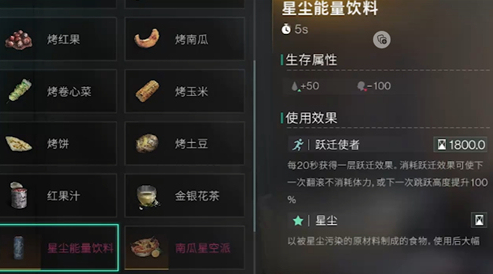接下来我们来看看饮料类食物,这些饮品不仅能够解渴,还能提供能量和特殊效果。比如特调冰酿这款饮料,它是用冰块水和酒精调制而成,非常清爽可口。喝下它后玩家的生命值和体力会得到恢复,同时所有异常状态也会被清除让玩家焕然一新。而星尘能量饮料则是一款神秘的饮品,用星尘水和糖制作而成。它不仅能够恢复玩家的生命值和体力,还能增强玩家的异能效果,让玩家在释放异能时更加强大。