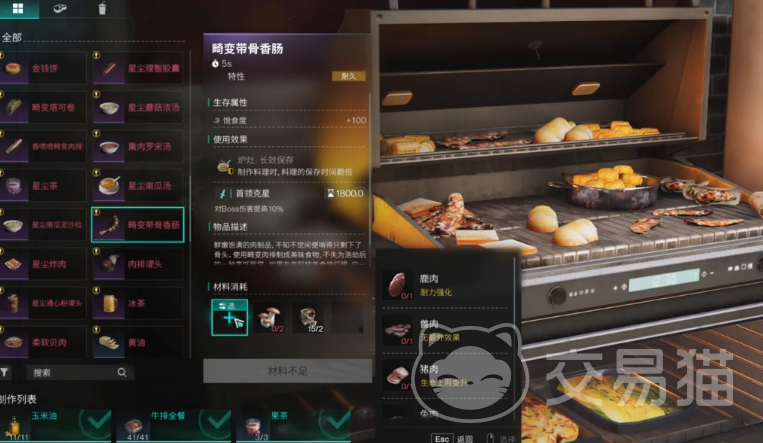 当然还有烹饪类食物也不能错过,这些美食需要用各种食材和调料精心烹制而成,每一道菜肴都充满了厨师的匠心独运。比如一道色香味俱佳的红烧肉,它不仅能够恢复玩家的生命值和体力,还能增加玩家的攻击力和暴击率,让玩家在战斗中更加勇猛。而一道香气扑鼻的炖鸡汤,则能够让玩家在享受美味的同时,恢复生命值和体力,并且提高玩家的回复速度。最后我们来说说特殊类食物,这些美食通常是由稀有食材和特殊方法制作而成的,它们的效果非常强大,但也可能带有一些副作用。比如一道传说中的龙肉大餐,它需要用到稀有的龙肉和多种珍贵调料制作而成。吃下它后玩家的所有属性都会得到大幅度提升,甚至进入无敌状态。但这样的美味佳肴可不是轻易能够获得的,而且吃多了也可能会让玩家感到不适。