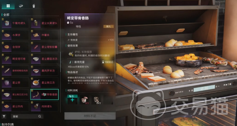 首先我们来说说罐头类食物,这些罐头里的美食,都是经过精心加工,可以长时间保存的。玩家不需要担心它们会变质,随时随地都可以拿出来享用。比如肉排罐头,只需要用肉排和盐就能制作出来。一口下去不仅能恢复玩家的生命值和体力,还能让玩家的防御力暂时提升,让玩家在面对危险时更加从容。而油浸鱼贝罐头则是一道口感鲜美的佳肴,它用鱼贝和油制作而成,能够恢复玩家的生命值和体力,并且提高玩家的回复速度,让玩家在战斗中更加持久。