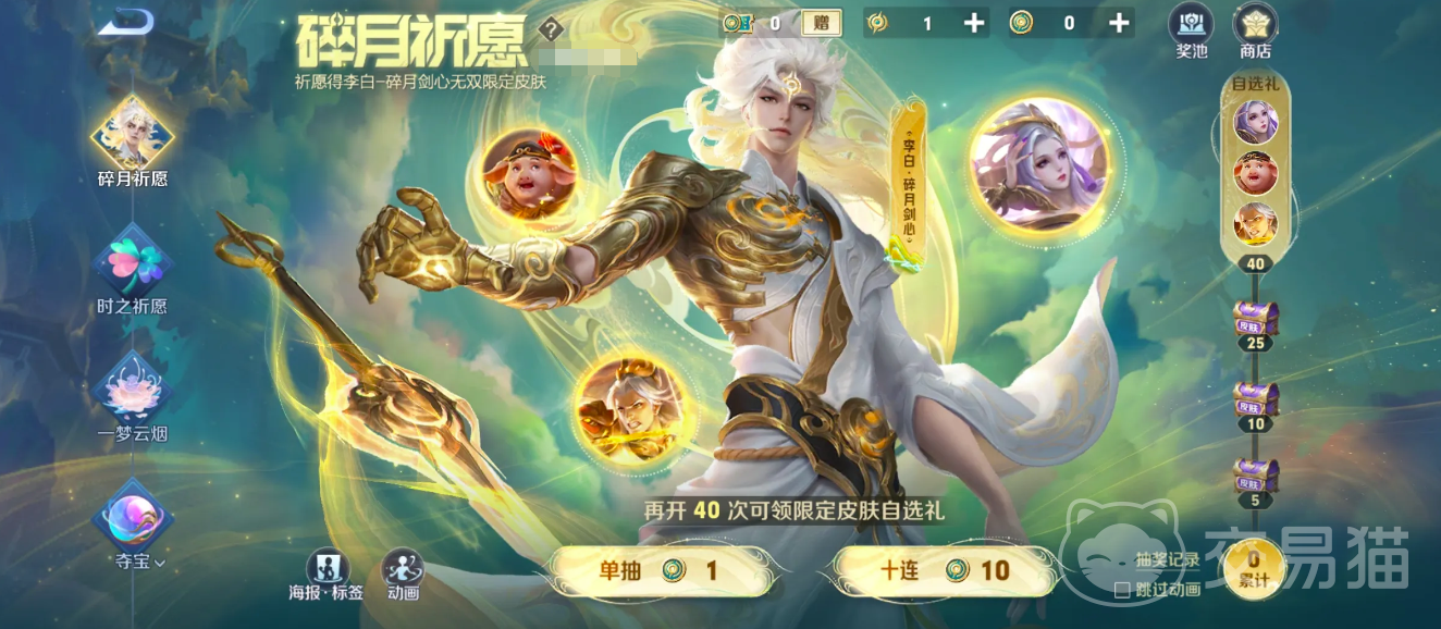 星之破晓李白无双皮肤抽奖攻略 星之破晓李白皮肤多少钱