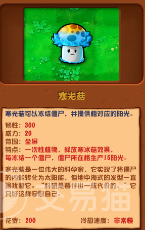 植物大战僵尸杂交版蘑菇寒光菇怎么样 植物大战僵尸杂交版寒光菇详细介绍