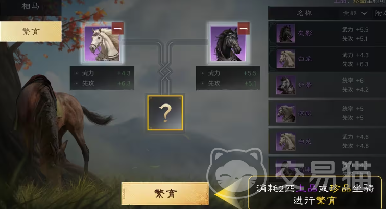 以上的全部内容就是三国谋定天下繁育玩法的所有介绍,这个玩法能够让玩家获得大量强大的坐骑整体提高武将和军队的实力,对玩家来说也是一种另类的养成快乐。我们下一期内容再见,拜拜~