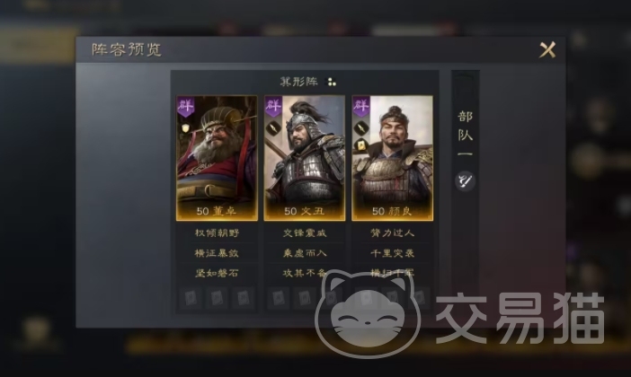 董卓作为阵容中的坦克和输出角色,他的存在为这个组合提供了极强的生存能力,不仅能抗住大量敌方攻击,还可以通过自身的特殊战法来削弱敌军的统率力,这样一来颜良和文丑的输出环境就更加安全。而颜良和文丑两人主要负责单体爆发伤害,高爆发能力能够迅速击溃敌军的关键武将,从而迅速占据战局优势。