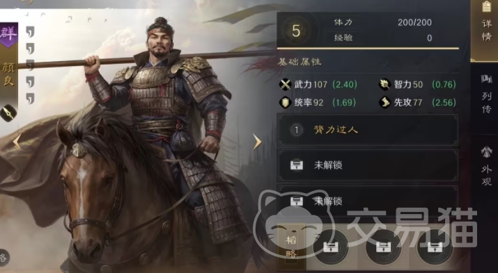 颜良的武将战法名为“遁世”,是一个非常具有战略意义的技能。使用“遁世”后,敌方武将会陷入无法行动的状态,这无疑是在战场上极其有利的控制技能。虽然“遁世”有较长的冷却时间,但玩家可以通过合理的战术规划,使这个技能在关键时刻释放最大的效用。合理使用“遁世”可以极大地影响战局。比如在敌方的核心输出武将即将发动攻击之前,如果能够使用这一技能将其控制住,无疑会让敌军的进攻计划大打折扣。