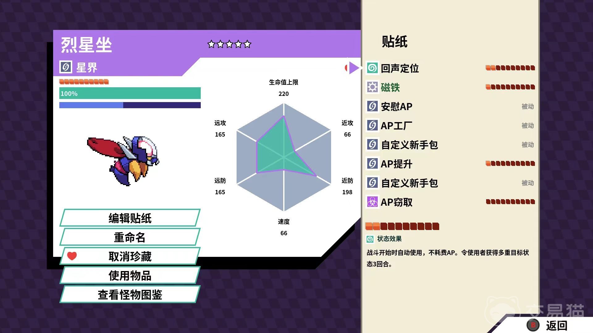 以上就是磁带妖怪烈星座的全部介绍了,总的来说烈星坐还是一个非常强势的宠物,搭配减伤类的贴纸,非常的肉,还有不俗的输出技能。大家也可以多尝试搭配新阵容,开发出更加强势的阵容,今天的攻略到此结束,希望可以对大家有用,更多有趣攻略可以关注豌豆荚APP!