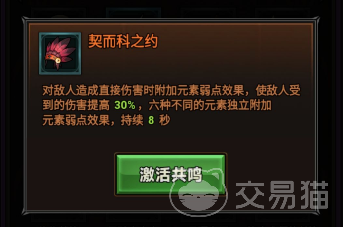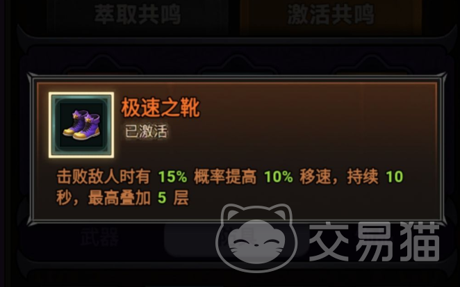 灼炎是一个能给对方带来很大伤害的武器,会比普通的武器攻击性能提升三倍,极速之靴主要是可以让玩家有较快的移动速度,如果击败敌人,那么就有一定的概率提高移动速度,每次移动能够持续十秒钟,也可以尝试在对战的时候激活契而科之约这个共鸣,共鸣可以对敌人带来很强的伤害效果,在这个同时还会附加元素弱点,这能让敌人受到伤害的几率提高30%,每次都可以持续八秒的时间。
