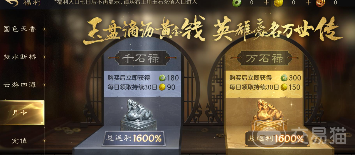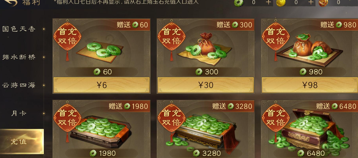 在游戏中的玉石货币是需要玩家进行充值才能够获取的,比黄金能兑换到珍贵的道具。找到之后我们来看一看充值页面中有什么样的活动福利,在游戏中,玉石的换算与货币的换算是1:10.。活动中玩家充值的玉石都会双倍增加福利和氪金力度还算优惠。