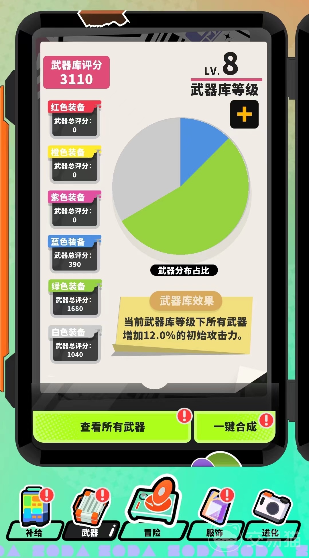 在升级的时候,除了自己去吸收能量之外,还有一些辅助道具。当地图中出现磁铁标志的时候,一定要去吃磁铁,因为它会将地图上所有散落能量全部吸到体内,这样可以加快升级节奏。地图中还会出现扭蛋机,通过扭蛋机也能够获得武器装备升级,遇到这些都是可以加快大家养成的进度,一定不要错过这些道具。除了战斗过程中,在战斗之外,大家也需要积极提升武器库,平时活动获取的装备可以在这里合成为更高品质,提升各项属性以及效果。