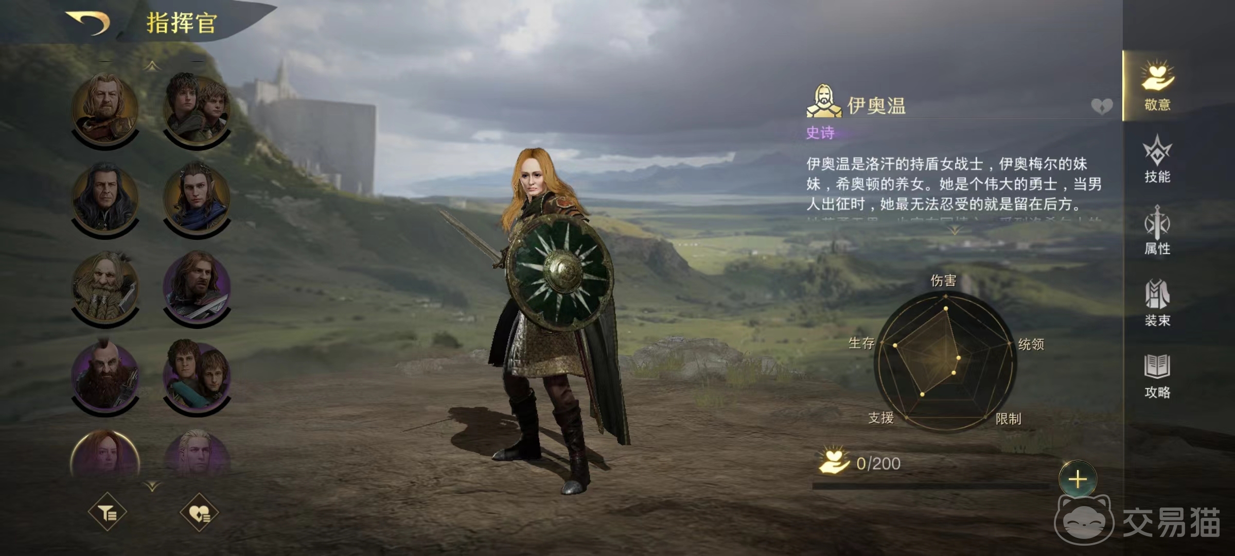 伊奥温是一名女战士,选择的主要原因是利用她来为己方骑兵部队恢复生命值,还能使本方阵的骑兵部队免疫昏迷,这些都是很有效的属性。选择希奥顿也是如此,他的技能可以使骑兵部队在造成伤害后附加追击效果,和伊奥梅尔非常接近,另外还能提高骑乘兵种属性等。
