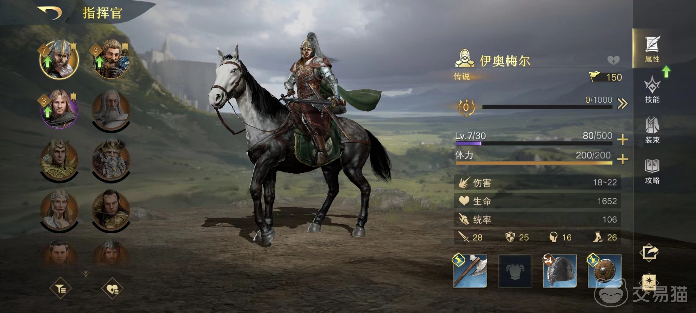 在最重要的指挥官选择方面,小编推荐白袍甘道夫,伊奥梅尔,希奥顿和伊奥温。选择这样的搭配是经过深思熟虑的。白袍甘道夫可以作为辅助提供增伤和减伤效果,可以为己方4个方阵减少前7次受到的伤害,还可以使前三个回合对方方阵受到的伤害提高,这些效果都和先锋骑士特点结合起来。伊奥梅尔自然是绝对核心,也是整个阵容最不可缺少的一个。他的技能使自身和骑乘部队有几率降低受到的伤害,同时使骑兵部队获得先手。先手效果能够优先行动,这对于骑兵来说非常关键。还有另一个技能伊奥雷德领袖,使己方骑兵部队造成伤害后有追加伤害效果。