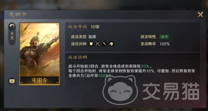 邓艾的【屯田令】提供了全队减伤和治疗效果,确保了部队在前几回合内的生存能力。随着战斗的进行,持续恢复效果会越来越显著,这使得整个队伍可以在较长时间内保持高战斗力。