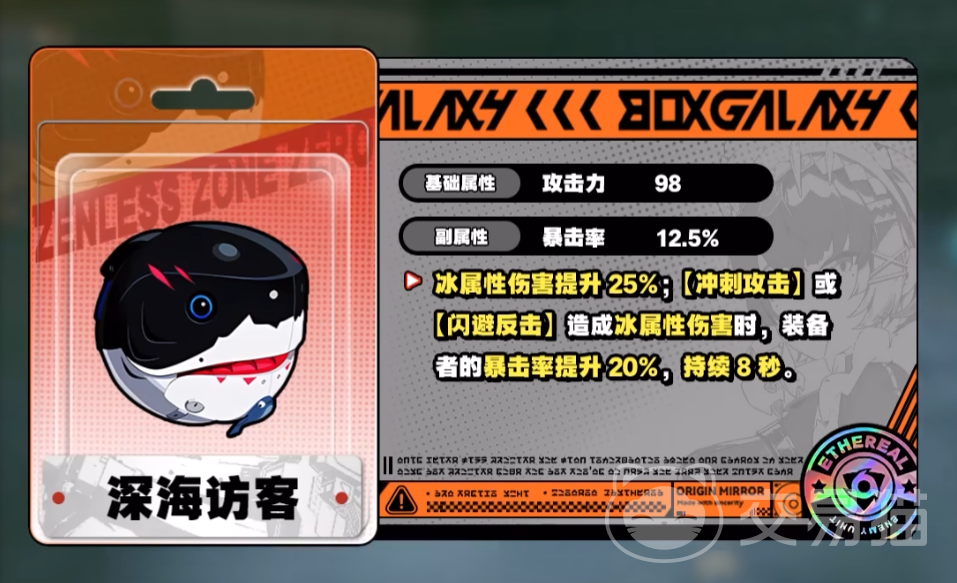 作为队伍中的输出主力艾莲自然是要堆双暴、攻击、穿透以及冰伤害。音擎自然是首推专武“深海访客”,高阶属性是需求最多的暴击率,特效更是提供了25%的冰伤,此外冲刺攻击、闪避反击后还有8秒的暴击加成。该音擎的特效与艾莲的输出手法也是完全契合的,只要正常输出就可以享受到加成。专武之外大月卡给到的音擎“加农转子”也挺适合她。
