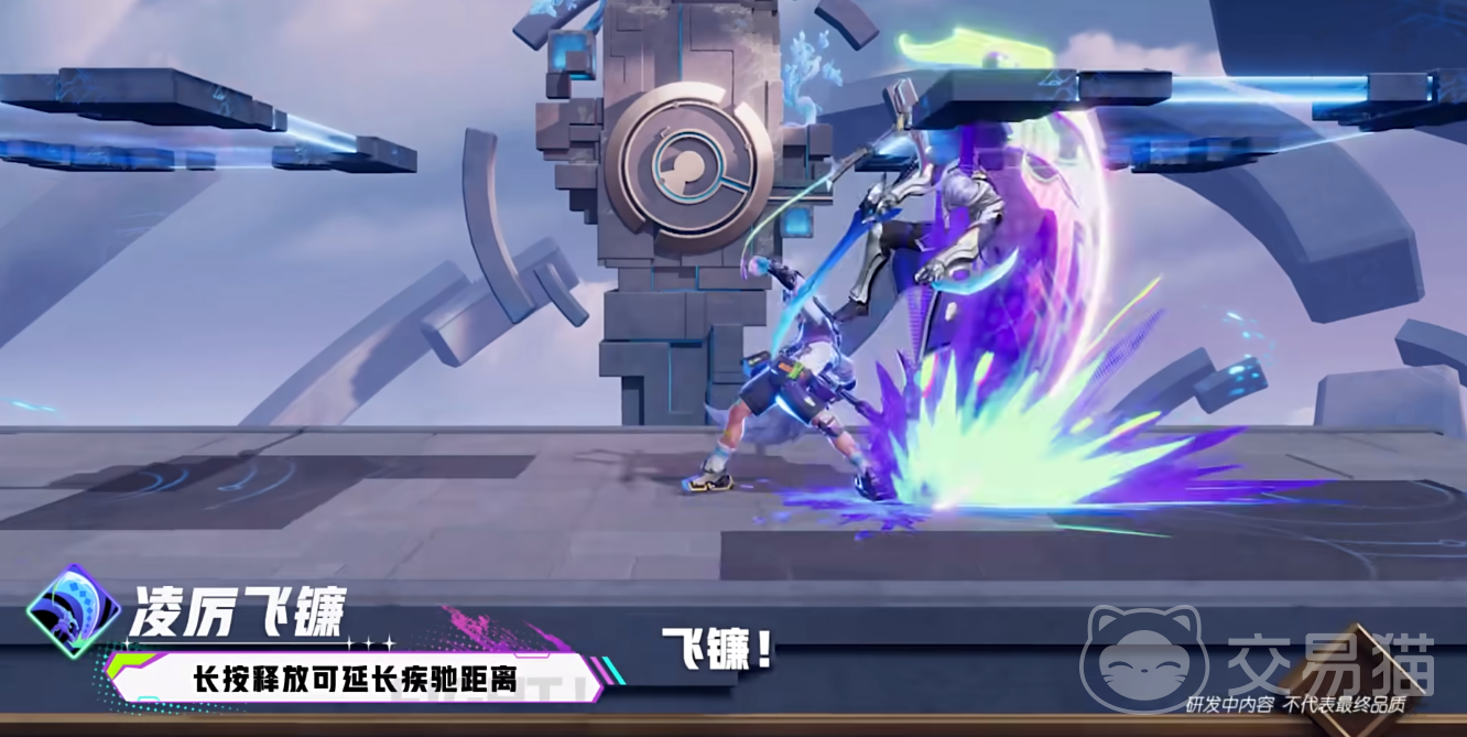 二技能凌厉飞镰:向前快速疾步行,向后甩出飞镰,进行半扇形的攻击,对命中的敌人施加高额伤害且有小段控制的效果。很适合冲击接近敌人之后,拉近身距打输出。