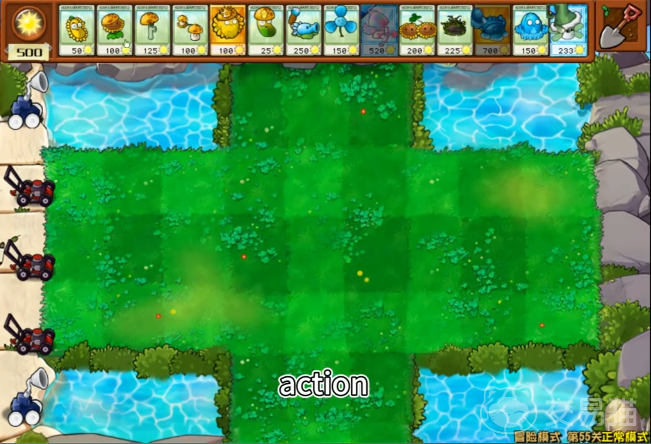 这关不同于之前,之前的场地都是全部是草坪,而这关在四个角增加了四个小水池,更大的增加了难度,这时候我们就需要带上水上植物类。小编推荐带上蘑菇向日葵,皇帝坚果,冰瓜猫尾草,毁灭海藻等。那么接下来就让小编带大家来看看如何通关。