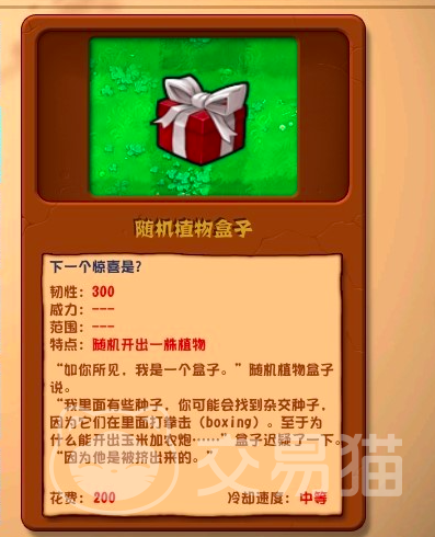 首先小编先来介绍一下这个随机植物盒子其实是游戏当中的一个创新元素,玩家在获得这个活之后可以随机开出一只植物,花费的话大概在200阳光,但是这种植物确实具有随机性的玩家获得盒子之后相应的防御塔装置全部都是未知的,能否过关一方面看运气,另一方面就要看策略了,其实想要打开这种有趣玩法的操作流程并不复杂,接下来小编就详细给大家说一说。